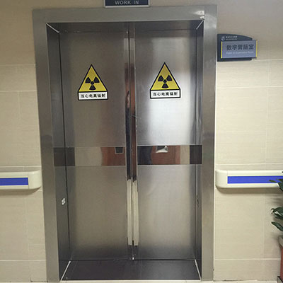 防護鉛門門體認為合適而使用國標鋼質(zhì)扇骨子,以不銹鋼做面板,夾襯優(yōu)質(zhì)射線防備保護鉛板,接合先進的冷高壓粘合工藝制造而成